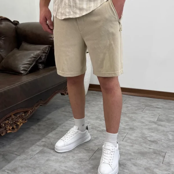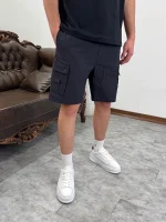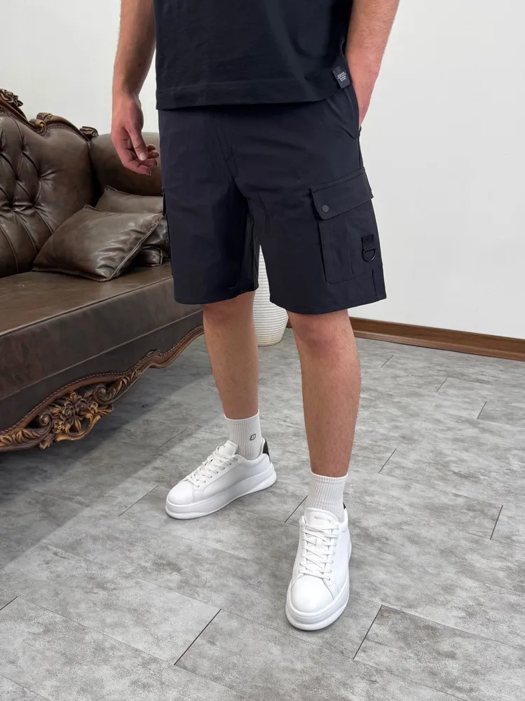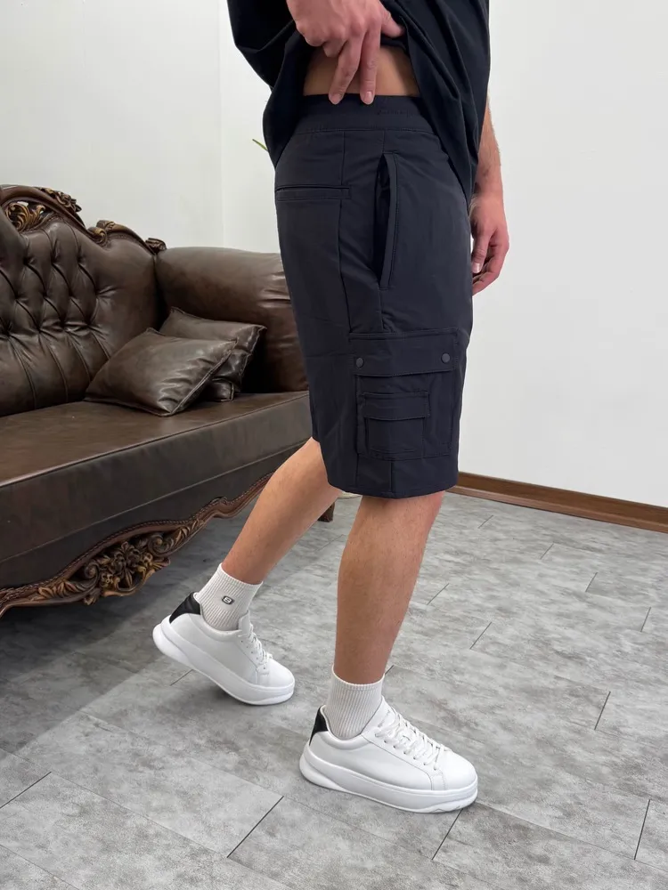 شلوارک کارگو مشکی با طراحی کاربردی و استایل خیابانی، گزینهای مناسب برای استایل روزمره و تابستانی است. طراحی شش جیب آن علاوه بر ظاهر خاص، فضای مناسبی برای حمل وسایل روزمره فراهم میکند.