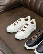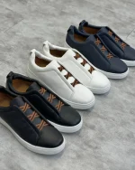 ونس مسترچین برند Zegna با طراحی تمیز، زیره نرم و استایل خیابانیِ لوکس، انتخابی است برای کسانی که دوست دارند کفش روزمرهشان یک درجه رسمیتر و شیکتر دیده شود. رویه باکیفیت و دوخت مرتب این مدل، ظاهر مینیمالی را میسازد که هم برای استفاده روزمره مناسب است و هم برای استایلهای Smart Casual که کمی کلاس اضافه میخواهند.