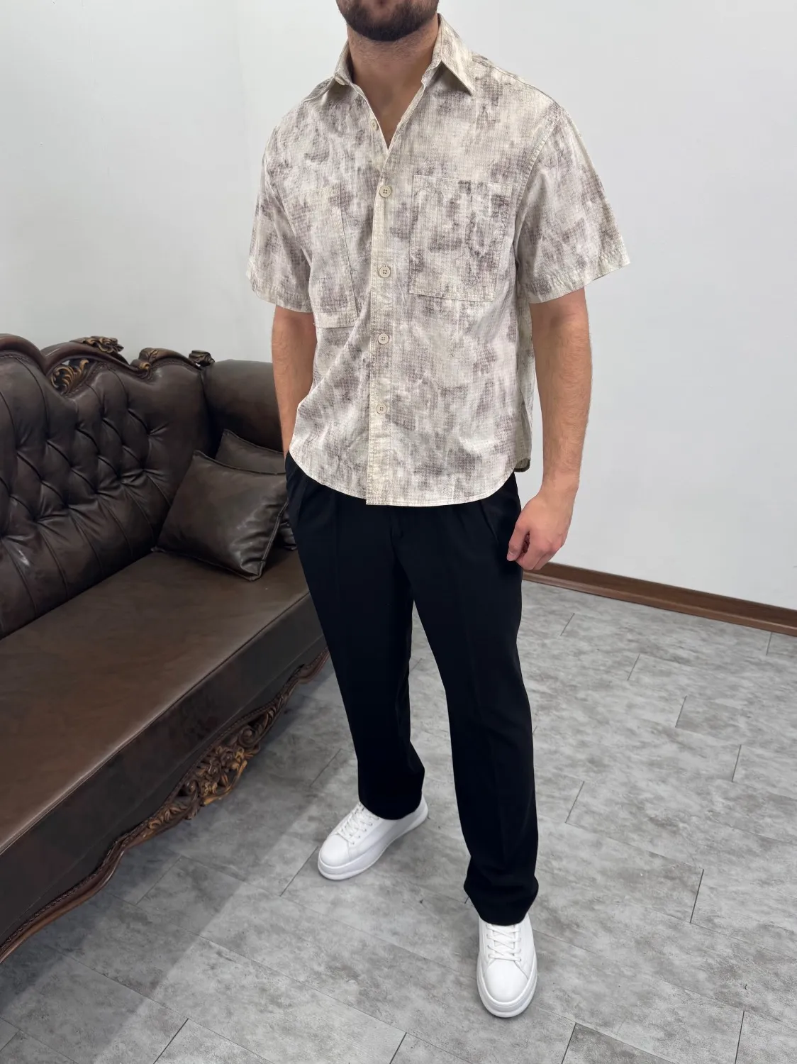 پیراهن باکسی آستین کوتاه با طراحی آبرنگی و ترکیب رنگ کرم قهوهای، انتخابی جذاب برای استایل کژوال و استریت استایل است. پارچه لینن کتان این مدل باعث خنکی، سبکی و راحتی در استفاده روزمره میشود و فیت باکسی آن ظاهر ترندی و مدرن به استایل شما میدهد.