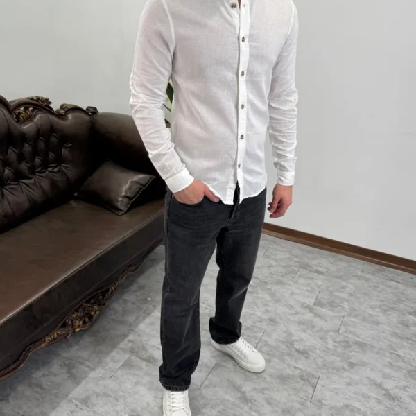 پیراهن کتان پاییزه مردانه مدل قواره آزاد (Relax Fit)، ترکیبی از راحتی، استایل مردانه و لطافت پارچه طبیعی است. پارچهی کتان استفادهشده در این مدل، از نوع فشرده و مقاوم است که برای فصول سردتر مثل پاییز گزینهای ایدهآل به حساب میآید — گرم، تنفسپذیر و خوشدوام.